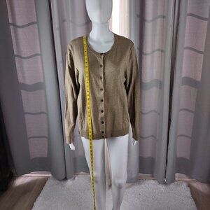 Karen Scott Cotton Blend Long Sleeve Tan Brown Button Up Cardigan Sweater Size L