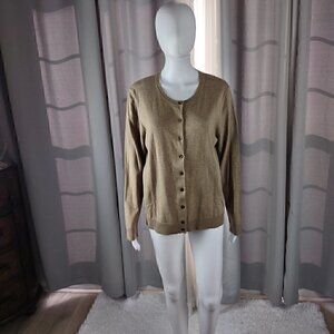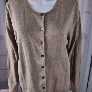 Karen Scott Cotton Blend Long Sleeve Tan Brown Button Up Cardigan Sweater Size L