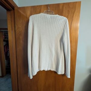 Elegant cable knit design. Soft and cozy fabric. Perfect for layering.