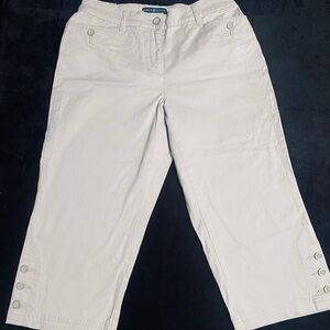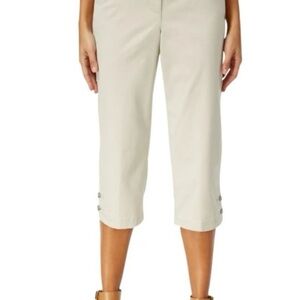 Experience the perfect blend of comfort and style with these cream capris from Karen Scott. Designed with a mid-rise waist and a tailored fit, they offer a flattering silhouette for any casual occasion. The subtle texture of the fabric adds a sophisticated touch to your look.