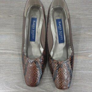 Karen Scott " Deanna " Genuine Leather Snakeskin Brown Pumps / Heels / Shoes