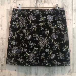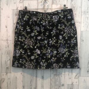 Dark blue with a floral pattern, 2 pockets, zipper and button closure, shorts same print as skirt,colors may vary due to lighting,good used condition, Sz: 6
