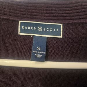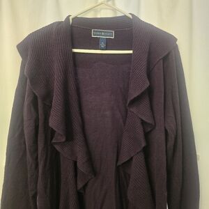 Karen Scott Deep Purple Ruffled Cardigan Sweater Size Xl