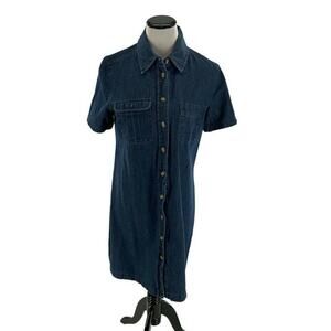 Karen Scott Jean Dress Women's Size Medium Short Sleeves Button Down Flap Pockets Denim