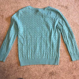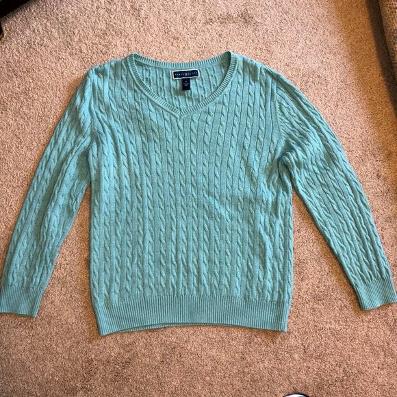 Karen Scott Dusty Teal Cotton Cable Knit V-Neck Sweater XL