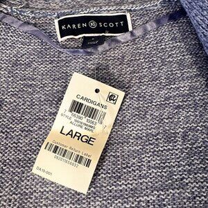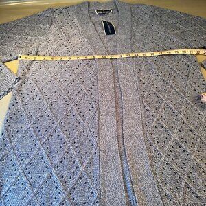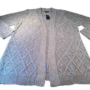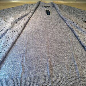 Karen Scott Eyelet Open Front Long Cardigan Women Sweater Long Sleeve Knit