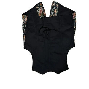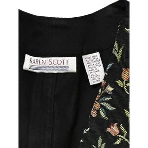 Karen Scott Floral Print V-Neck Sleeveless Button Front Vest Jacket Black Large