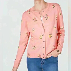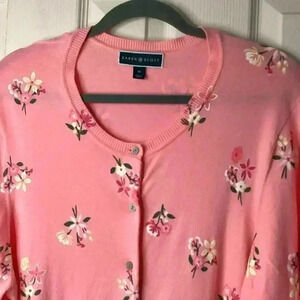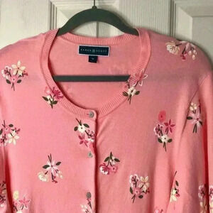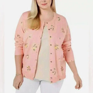 Karen Scott Floral-Print Pink Cotton& Viscose Blend Cardigan Size 1X