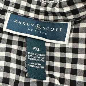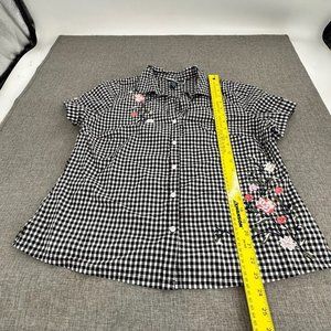 Karen Scott Gingham Button Down Top Embroidered Floral Detail Petite XL Black
