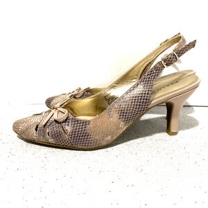 Karen Scott Glennaf slingback pumps US 8M faux snakeskin tan uppers dressy shoe