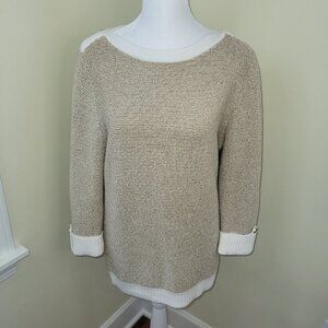 Karen Scott Gold & Ivory Glitter Metallic Pattern Pullover Sweater Women’s SZ M