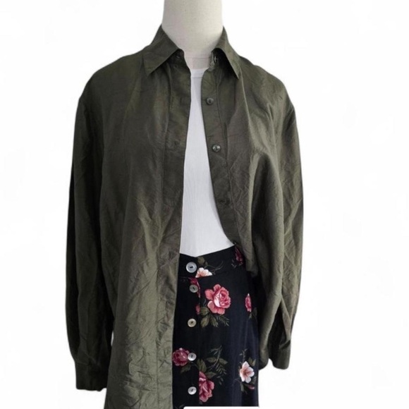 Medium, 100% Raw Silk. Shimmery green with green buttons.
