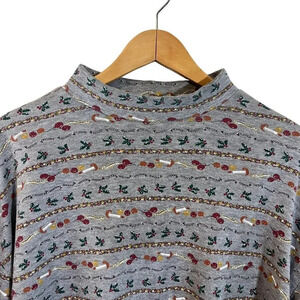 Karen Scott II Mock Neck Top Plus 2X Holly Leaves Mushroom Balloons Candy Cane