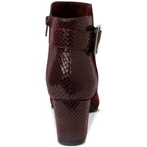 Karen Scott Ivyy Mixed-Media Heeled Booties Wine Snake Size 7 M