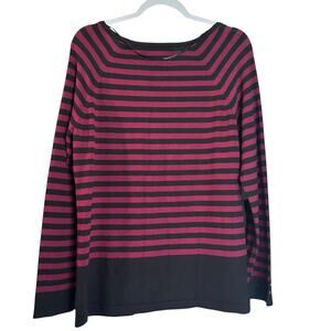 Karen Scott Knit Jersey Striped XXL Button Accents Burg/Black Nautical Stretchy
