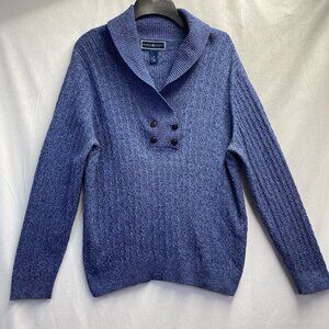 Karen Scott Knitted Braid Split Cowl Neck Long Sleeve Sweater Women XL Blue Used