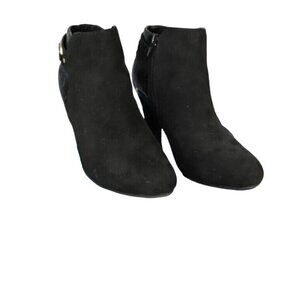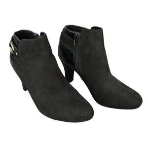 Experience luxurious style with Karen Scott Koraa Strapped Croc Embossed vegan leather Ankle Booties in black, size 6.5. Designed for Macy's, these booties blend fashion and sustainability beautifully.