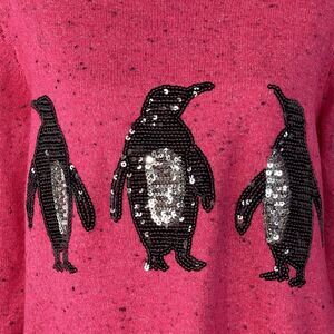 Karen Scott Large Penguin Sweater Sequin Crew Neck Long Sleeve Stretch Pink New