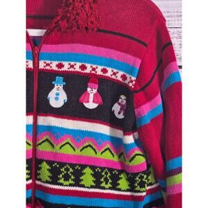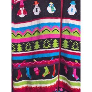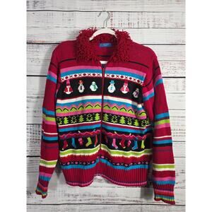 Karen Scott Large Petite Holiday Christmas Sweater Zip Cardigan Snowman stocking
