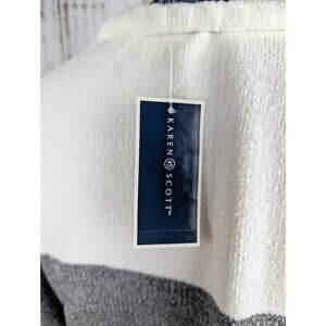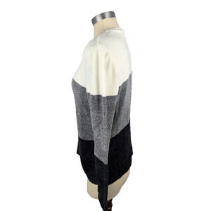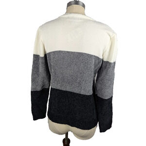 Karen Scott Lucy Chenille Colorblocked Sweater White Gray Black Size M