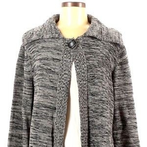 Karen Scott M grey marl one button open to hem long sleeve cardigan sweater
