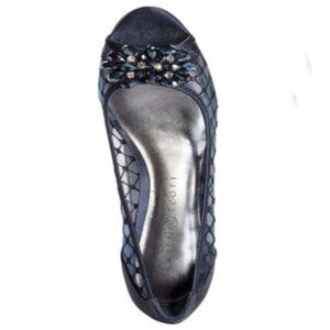Karen Scott Maralyn Navy Peep Toe Special Occasion Pumps, Size 8.5M. Perfect for an evening out, a special occasion or a wedding. Worn only once for a wedding, excellent condition.