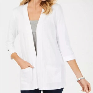 Karen Scott Off White Long Sleeve Soft Open Front Cardigan Sweater Large