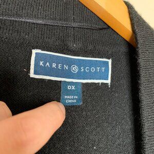 Karen Scott Open Front Cardigan Duster Black Soft Knit Women's Size Large (0X)