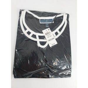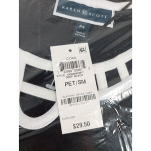 Karen Scott Petite Cotton Lattice-Trim Top Deep Black PS