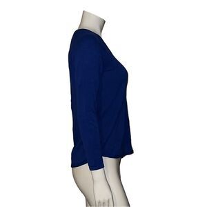 Karen Scott Petite Cotton V-Neck Curved-Hem Pullover Sweater Ultra Blue PP NWT