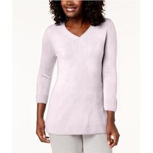 Smart, smooth and chic, Karen Scott's petite sweater has classic lines that translate to any wardrobe. Relaxed fit; hits at hip Designed to fit and flatter 5'4" and under frame V-neckline Ribbed at edges 3/4-sleeves Acrylic Machine washable Imported Web ID: 6496120Size: Womens MP Condition: New