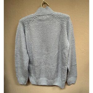 Karen Scott Petite Medium Pullover Cable Knit Mock Sweater Pearl Button Gray New