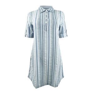 Karen Scott Petite Seersucker Shirtdress Persian Blue Combo XS