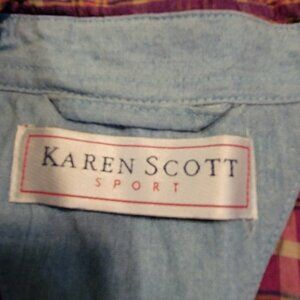 Karen Scott Plaid Seersucker Button Down Sleeveless Shift Dress Size 10