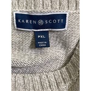 Karen Scott Plus PXL Polar Bear Christmas Sweater Glitter Santa Hat Gray