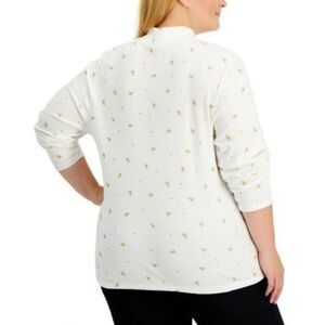 Glittery trees and glowing dots bring festive flair to Karen Scott's plus size printed knit mock-neck top to make it a smart layer or a stylish solo player. Relaxed fit Mock-neck Cotton/polyester/spandex Machine washable Imported Web ID: 9896592