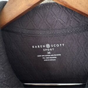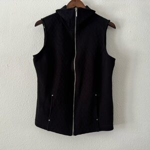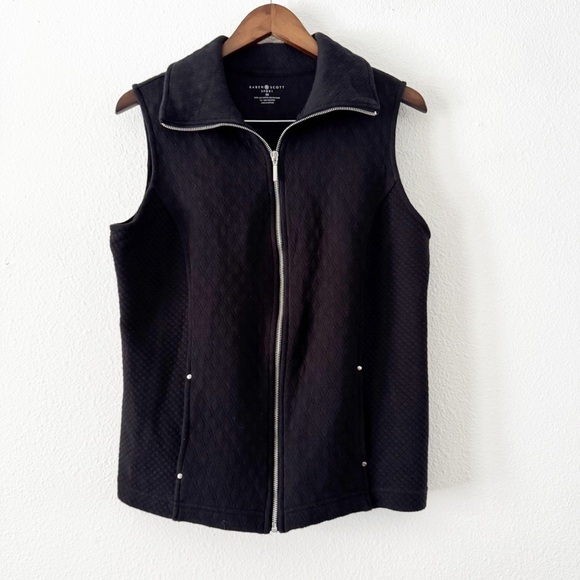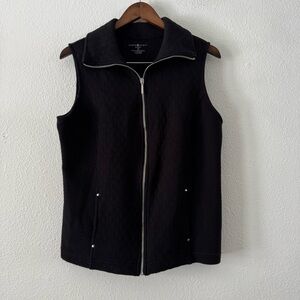 Karen Scott Quilted Vest Sport Womens Fleece Black Jacket Medium Full Zip