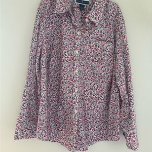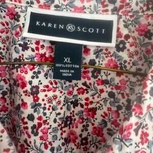 Karen Scott Red and White Floral Casual Button Down Shirt XL 100% Cotton