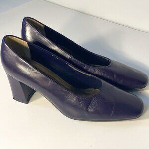 deep dark purple color leather pumps great for any special occasion or the office for a professional vibe.