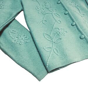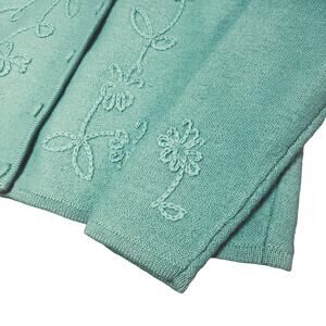 Karen Scott Sage Green Floral Embroidered Button Front Wool Cardigan Size Small
