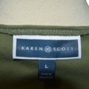 Karen Scott Scoop Neck Long Sleeve Tee. Size is Large and color is Olive Green. 100 % Cotton. Like New worn once and washed.