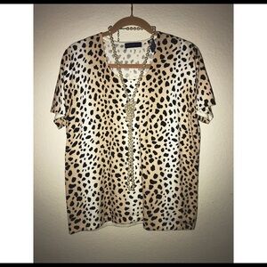Karen Scott Sexy Leopard Sweater w/Short Sleeves