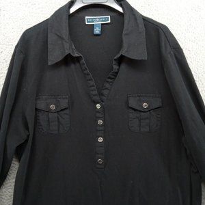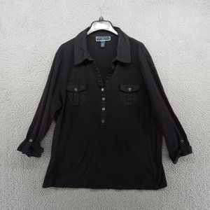Karen Scott Shirt Womens 3X Black Collared Henley Double Pockets Workwear