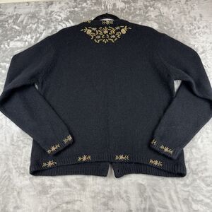 Karen Scott Silk Angora Cardigan Sweater Womens L Black Gold Bead Holiday (1052)