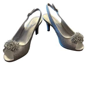 Karen Scott Silver Slingback Dressy Pumps Sparkly Rhinestones NEW Size 7.5 WIDE