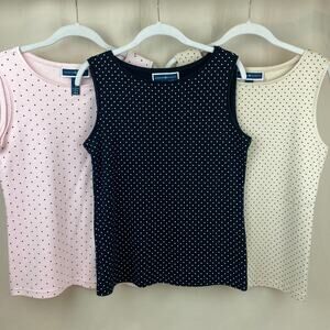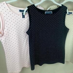Karen Scott Sleeveless Tank Top Polka Dot Pink Black Tan Taupe Small