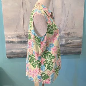 Karen Scott Sleeveless Tropical Button Down Shirt, Medium