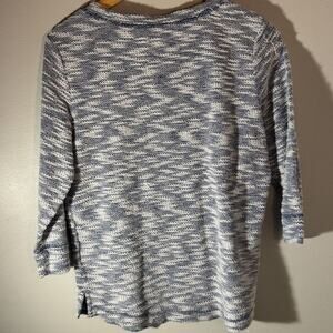 Karen Scott Sport Blue & White Marled Knit 3/4 Sleeve Tunic Sweater | Small
