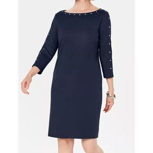 New Karen Scott Sport Cotton Studded 3/4-Sleeve Shift Dress size PET/SM academia