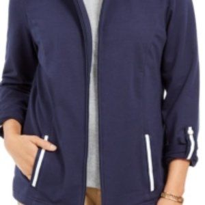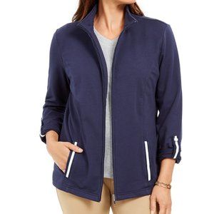 Karen Scott Sport French Terry Ribbon Trim Jacket